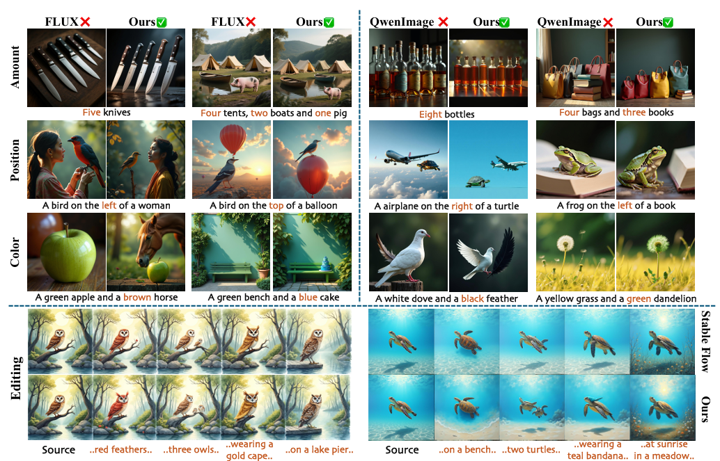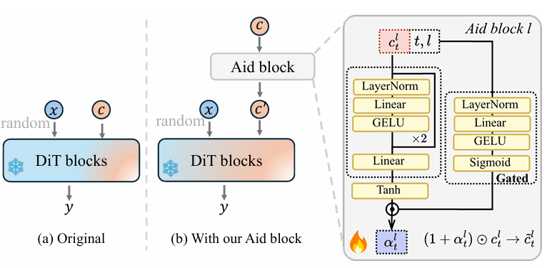 Wepresented Diff-Aid, a plug-in module for rectified text to-image diffusion transformers that learns to adaptively adjust block-wise interactions between token-level textual conditions across denoising trajectories.